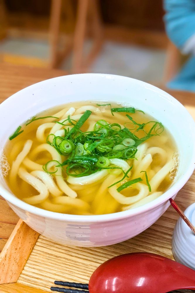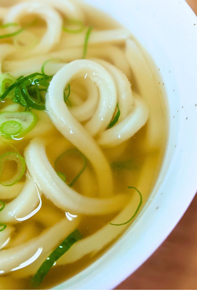 かけうどんなので、具はなし。ネギだけのストロングスタイル。