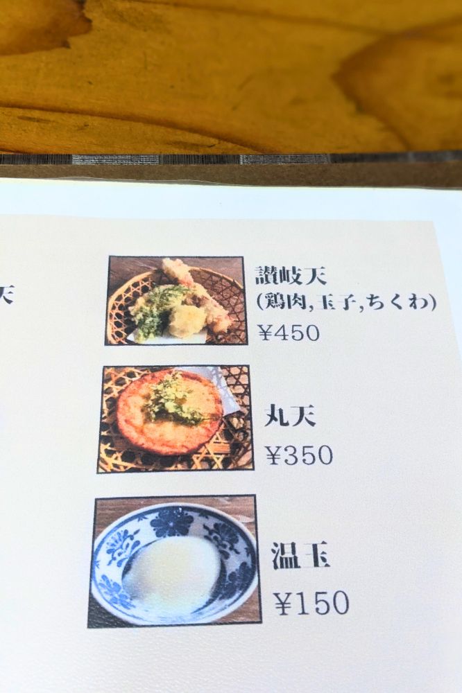 僕も天ぷら食べたかったので、讃岐天を追加。玉子天、鶏天、ちくわ天、全部大好きなやつ!