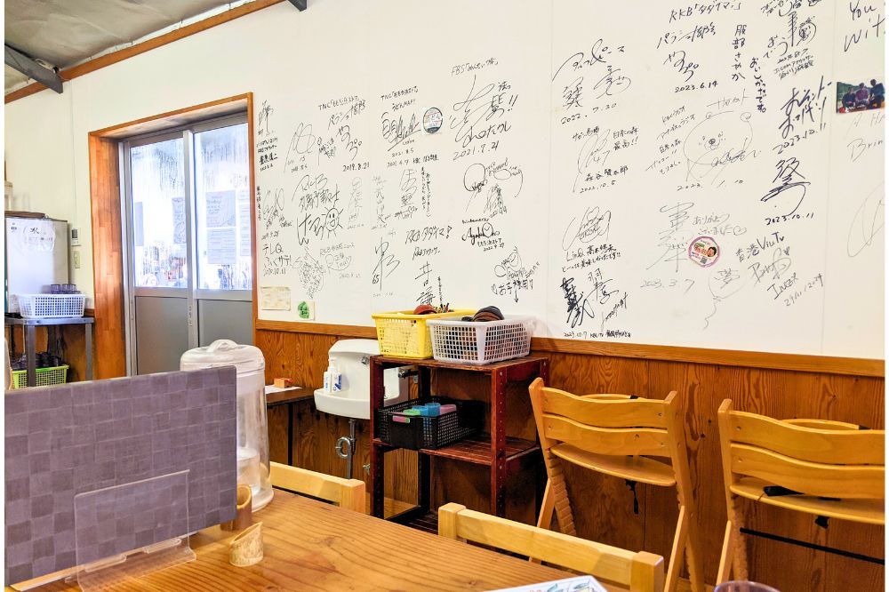 壁はサインがたくさん。色んな番組が来てるようでした。かなり有名なお店なのですね。