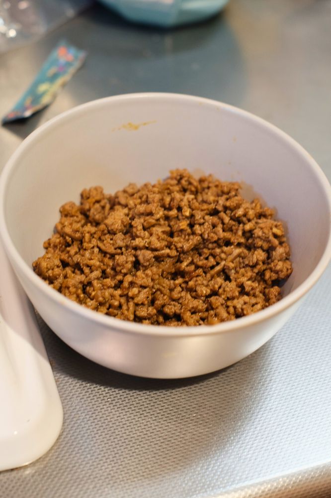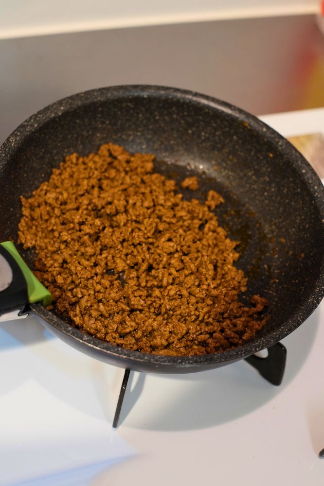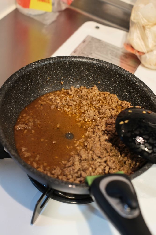 - 水分が無くなってきたら火を止めてタコミートの完成