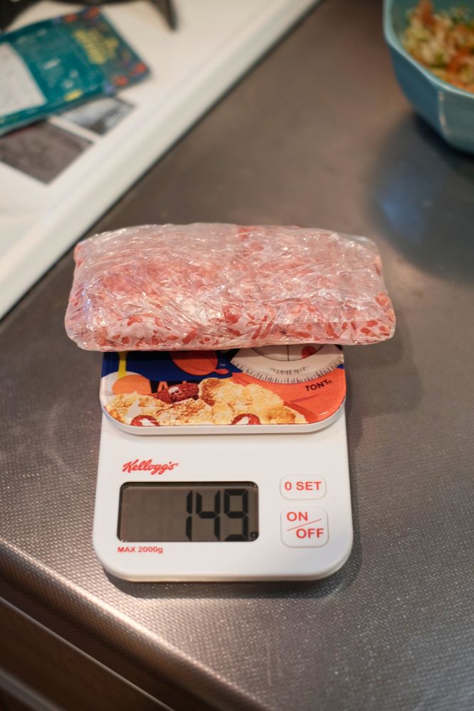 ひき肉、いつも200gとかなのでちょい少なめ。