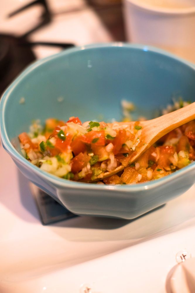 - 上の3つを混ぜたあと、塩約1g、すだちを絞って混ぜ、サルサソースを作る