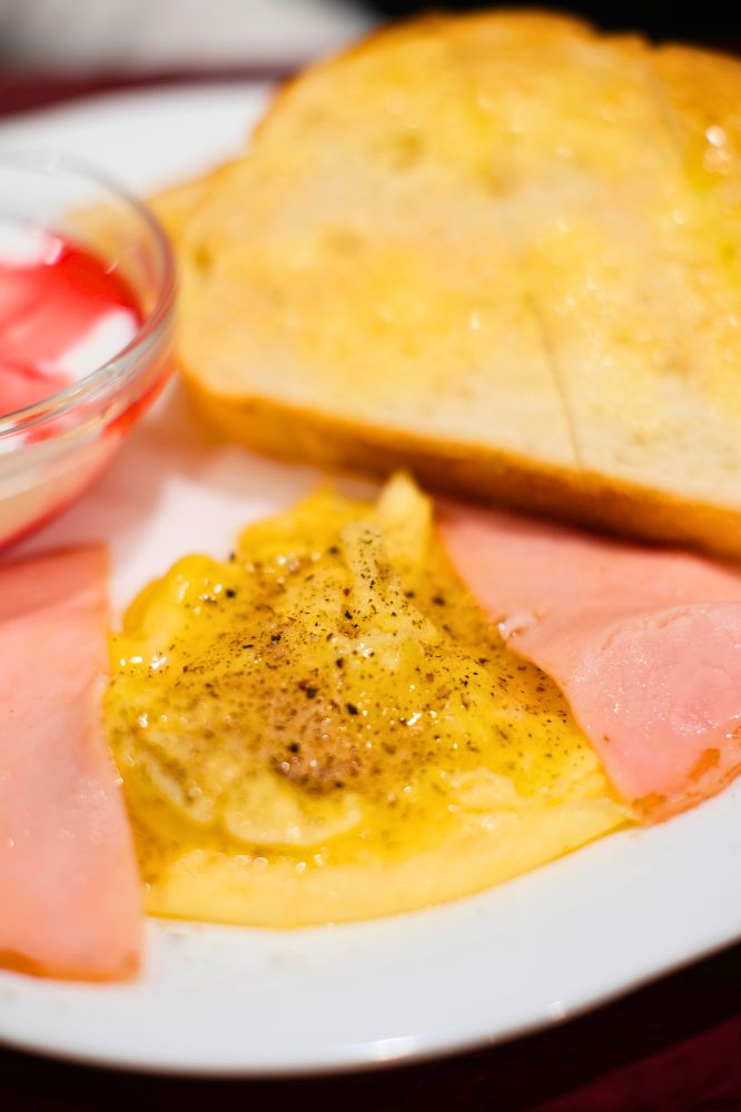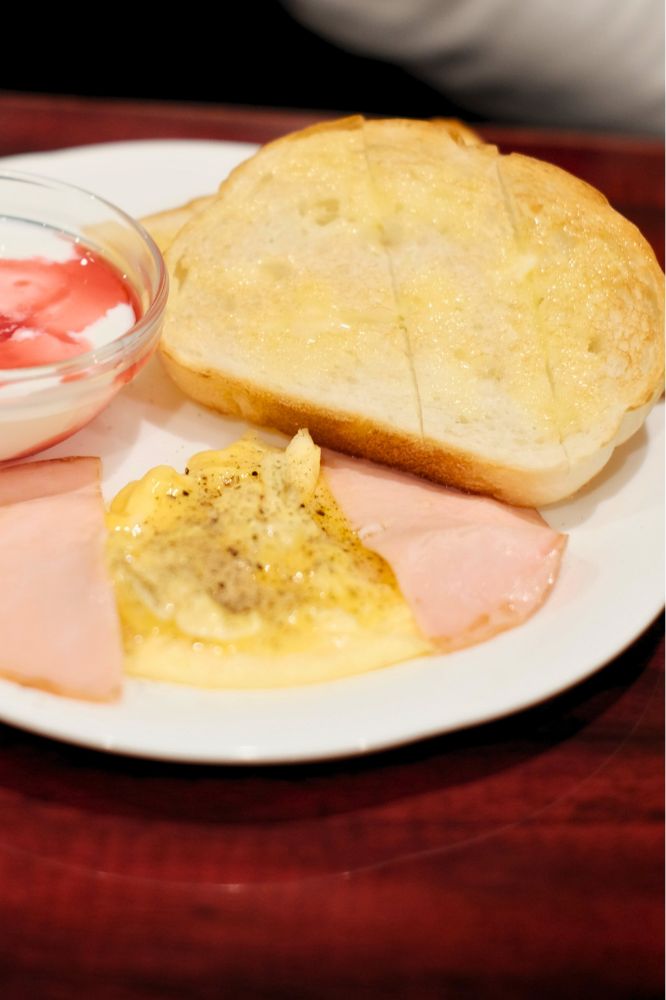 一緒に行った友達はモーニングのスクランブルエッグセットを注文。パンは丸いのと三角。友達曰く、「トーストが2種類あるのめっちゃいい」とらしい。バター塗ったトーストはいつ食べてもうまいですね。