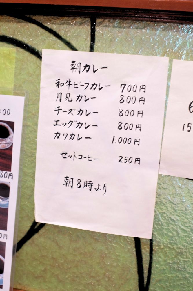 お店に入った瞬間カレーのめっちゃいい匂いが!それまでモーニングのサンドイッチかホットサンド食べようと思ってのに。朝からカレーあるんだ!