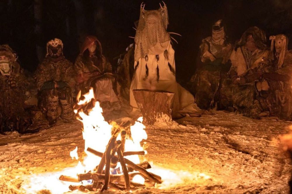 この写真のように、遭難中の彼女達が動物の被り物みたいなビジュアルになってるシーンも挟み込まれるので、彼女達の中でヒエラルキーがあって、カルト化していくみたいな展開もあるかもしれない。ただ予告のため、見た目のインパクトがほしいだけのシーンの可能性もあるにはあります笑